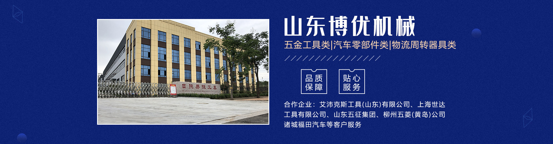 分公司日照易捷工具制造有限公司坐落在山東省日照市五蓮縣工業(yè)園,占地65畝(五蓮縣日照路與人民路交匯處),現(xiàn)有員工60名。公司主要產(chǎn)品有五金工具類及汽車零部件類、模具制作等三大系列。 主要設(shè)備有加工中心、數(shù)控車床生產(chǎn)線、磨床、研磨機、拋光機、冷鐓擠壓成型機、數(shù)控液壓模鍛錘等機械加工設(shè)備140余臺套。公司主要為艾沛克斯工具(山東)有限公司、上海世達工具有限公司、山東五征集團、柳州五菱(黃島)公司、諸城福田汽車等客戶服務(wù)。公司多年被評為優(yōu)秀供應(yīng)商。